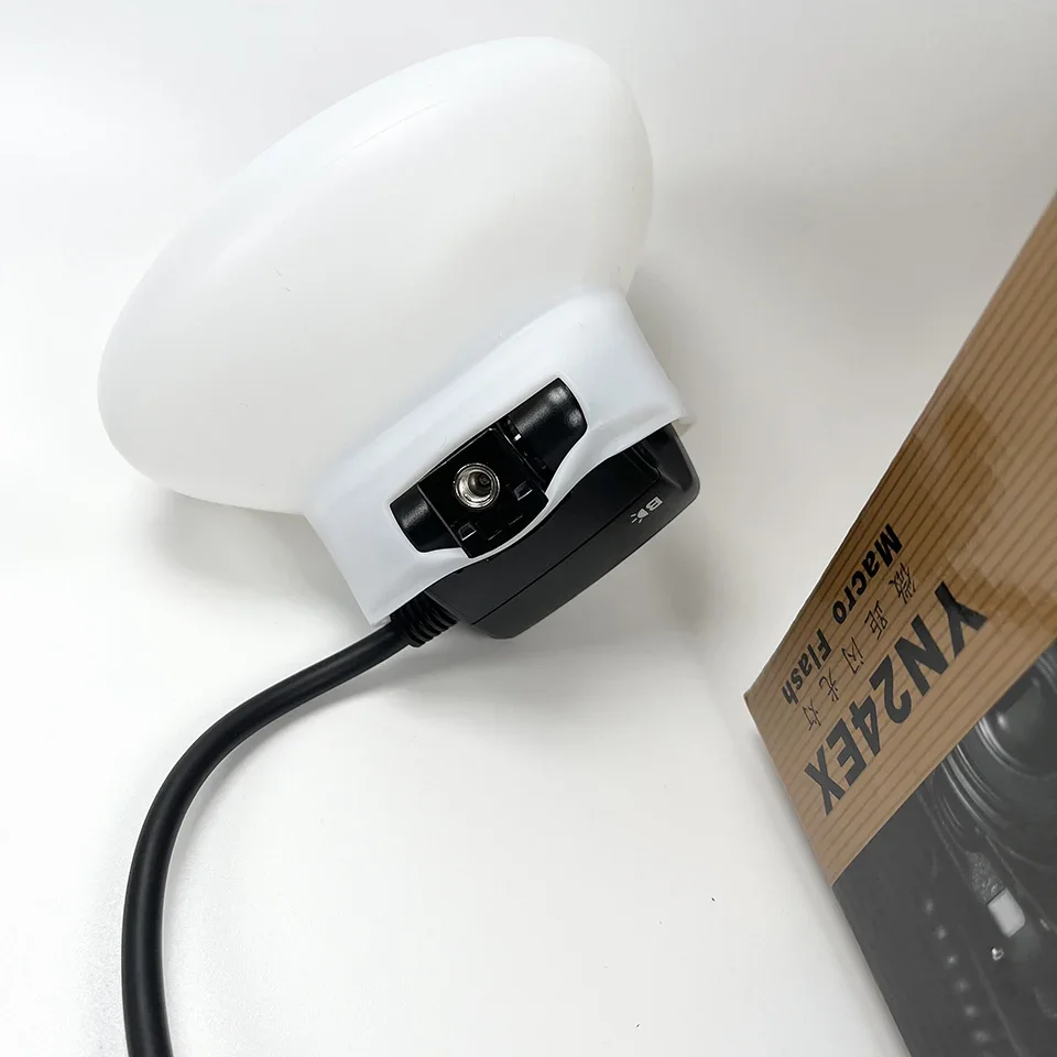 Godox MF-DD — это силиконовый рассеиватель, предназначенный для использования с макровспышками серии Godox MF12 и Yongnuo YN24EX. Он смягчает свет, уменьшает жёсткие тени и помогает получить равномерное освещение при макро- и дентальной съёмке. Рассеиватель устанавливается непосредственно на головку вспышки и формирует куполообразный, рассеянный свет.